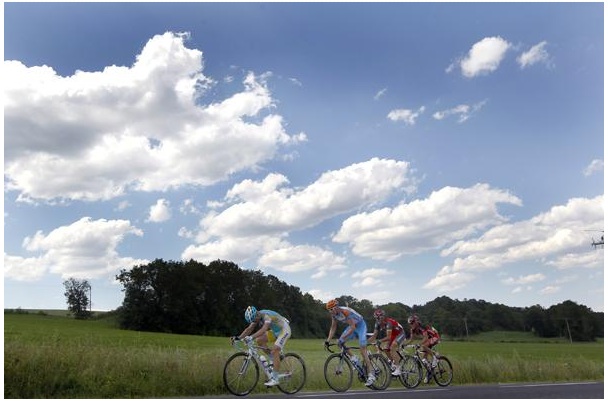 Alexander Vinokourov won stage 13 of Le Tour today with a late stage attack. He jumped clear at the bottom of a small climb 10 km from the finish. He managed to hold a 10-second advantage over the sprinter’s teams who were probably driving the peloton at speeds approaching 60-65 km/hour on the flat.