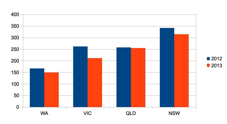 In Queensland the result is less dramatic, down from to 258 to 255.