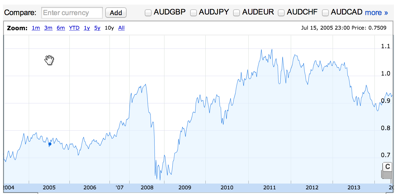 Of course, post-2009 also coincides with a much higher Aussie dollar. There were three good years there where you could buy a greenback for less than one Aussie dollar. Of course, those days are behind us.