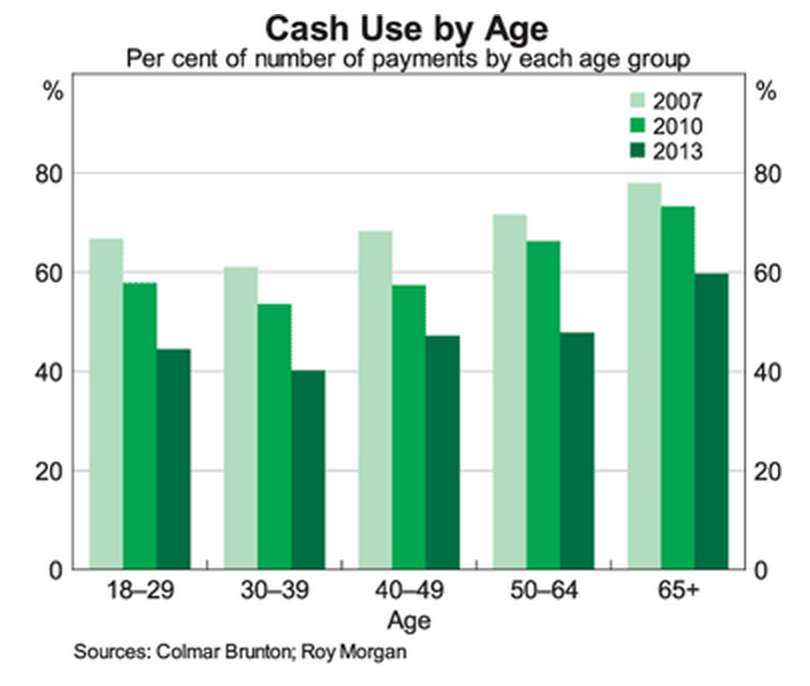 Negative interest rates would not necessarily cause a riot. Bank fees already work in such a way that we’re used to seeing our bank balances retreat when left alone. A cash free future is plausible. People are using cash less and less.