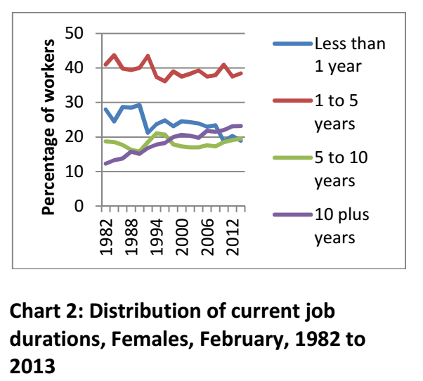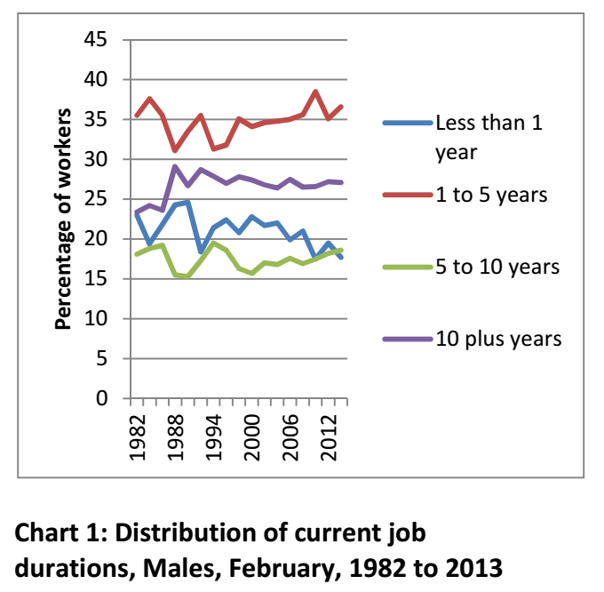 He crunched the numbers and found that despite the decline of unions, the march of neo-conservatism, the lingering influence of Peter Reith and the legacy of workchoices, job durations are as long as – or longer than – they were in 1982.