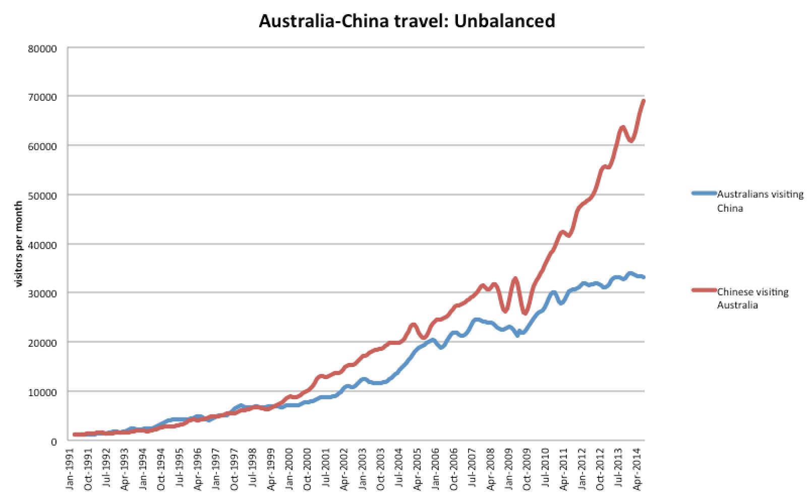Far more Chinese visit Australia than Australians visit China. This is intriguing.