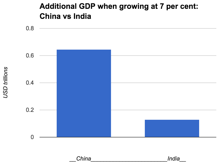 Here’s how much extra GDP the two giants add when they both grow at seven percent.