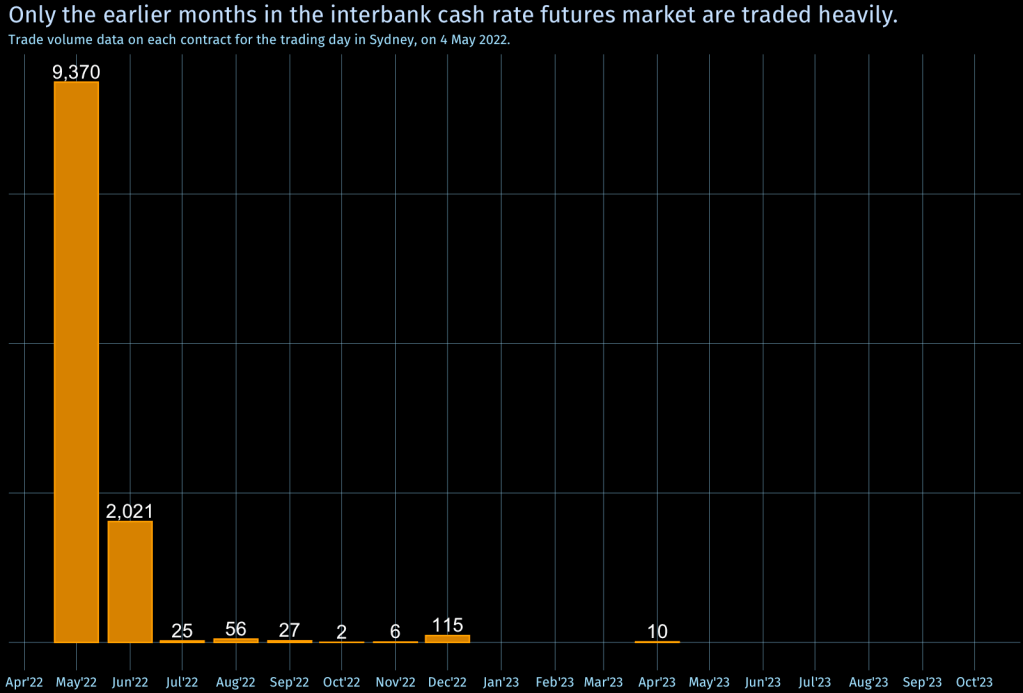 Interbank futures are not the only kind of futures product you can use to predict the future of interest rates. Another is called overnight indexed swaps (OIS) (aka overnight index swaps, both terms seem to be in use.) These are a bigger and more liquid market. They can trade differently to the interbank futures, directly between parties, rather than on an exchange. That would mean we don’t have data on them. However ever since the 2008 global financial crisis, governments like to keep an eye on derivatives like OIS, so (at least some of) the trades clear through a clearing house which collects data and provides it to government.