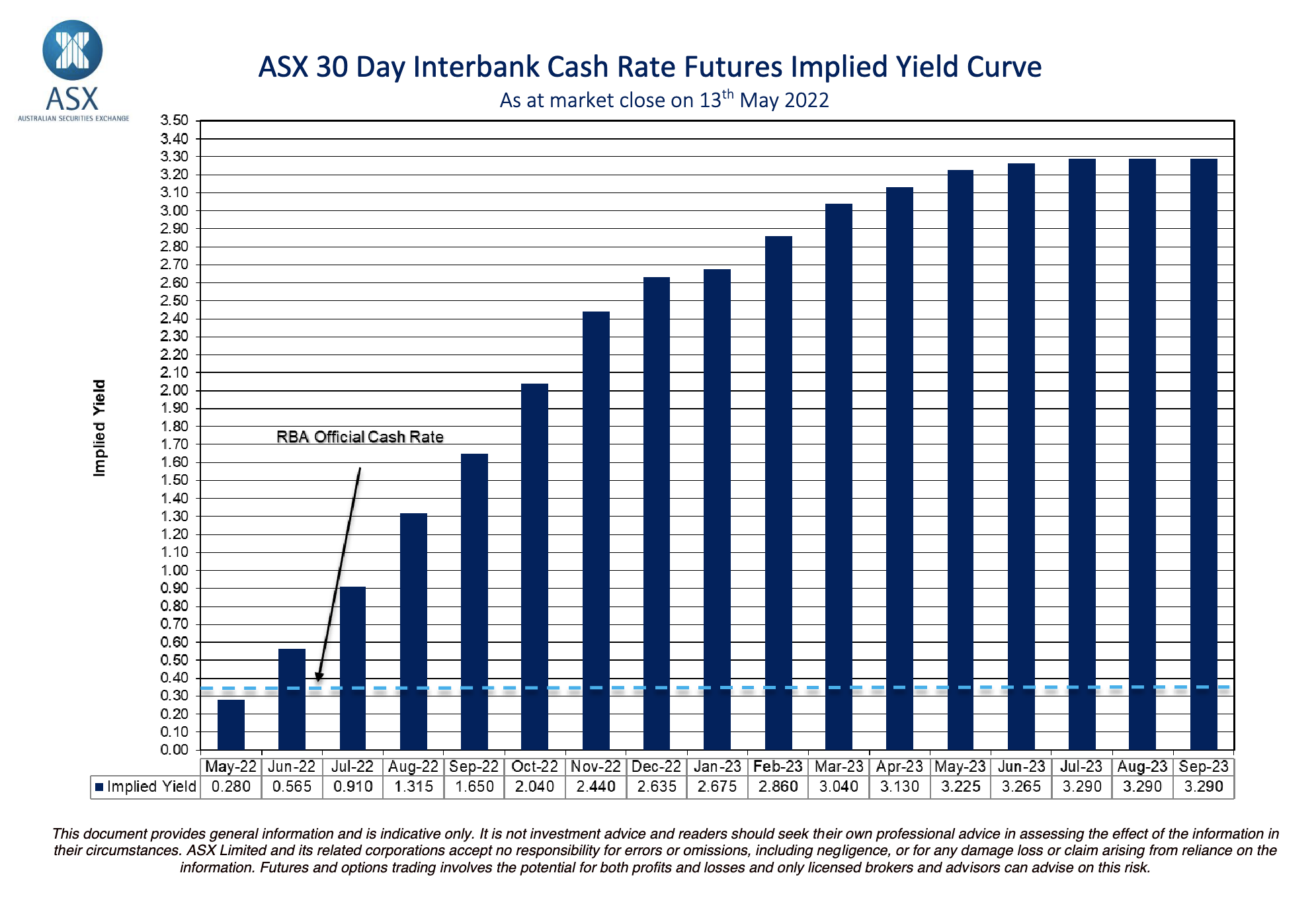 Everyone’s excited about this chart. It shows official interest rates racing up to over 2.5 per cent by the end of the year. That would be one of the fastest interest rate rise cycles in history and would make a lot of people with mortgages rather unhappy.